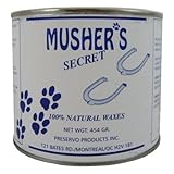 Musher's Secret Paw Protection (1 lb) is a dense barrier wax that forms a breathable bond with your dog's paws. Developed in Canada for use with sledding dogs, it provides protection even in the most extreme conditions. Perfect for dogs who don't like boots! Made from 100% safe and natural waxes, Musher's Secret won't stain carpets, is non-toxic, and is easy to use. The semi-permeable shield is absorbed into the paws, allowing perspiration to escape through the toes. Excellent for preventing snowballing and saltburn on your dog's toes in the winter and protects paws against sandburn and hot asphalt in summer. Apply a small amount on and in-between your dog's toes. If snowballing re-occurs, just reapply. Wipe off excess after use. Also can be used for protection and soothing relief from fly bitten ears, open sores, cracked toes, nicks, scratches, and burns. Just apply a small amount to the affected area as needed. Musher's has no healing properties but used over a cleaned wound, will keep out dirt and speed the healing process. Don't forget the human factor: Use Musher's Secret on your cheeks and hands to prevent windburn.